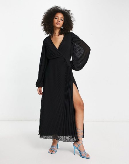 Chiffon Wrap Button Detail Maxi Dress